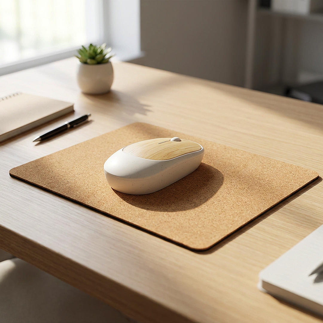 CORK PAD je podloga za kompjuterskog miša izrađena od kombinacije gume i plute, koja spaja funkcionalnost i moderan dizajn. Površina od plute doprinosi jedinstvenom vizuelnom izgledu i prijatnom taktilnom osećaju, dok gumeni deo na donjoj strani obezbeđuje stabilnost i sprečava klizanje tokom korišćenja. Podloga se može brendirati primenom laserske gravure i digitalne štampe, omogućavajući personalizaciju po želji i efektno isticanje brenda. Ovaj proizvod je odličan izbor za promotivne kampanje i korporativne poklone. Ključne karakteristike: Materijal: pluta • Neklizeće dno: gumeni sloj na poleđini